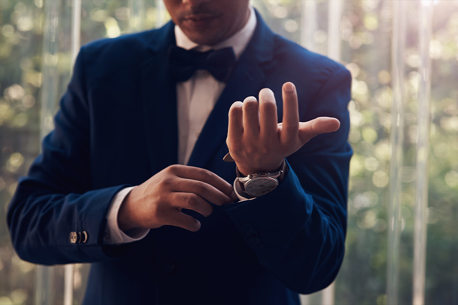 Seasonal Attire: In summer, lighter fabrics and colors are ideal. Linen suits or even well-fitted short-sleeve shirts can work for a beach or garden wedding. In winter, darker colors and heavier fabrics like wool are suitable.