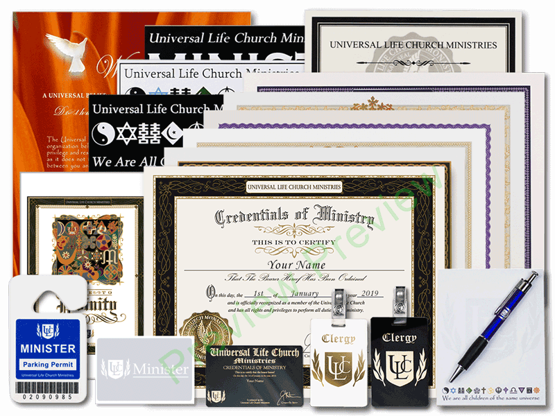 Our Premium Minister Kit goes beyond the basics and includes a premium version of your official credentials, along with supplies for a range of ceremony types.